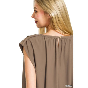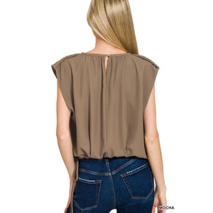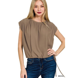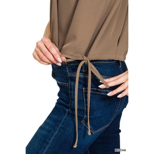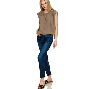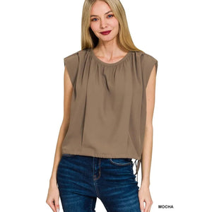 Zenana Woven Drawstring Tie Side Sleeveless Top