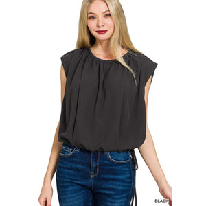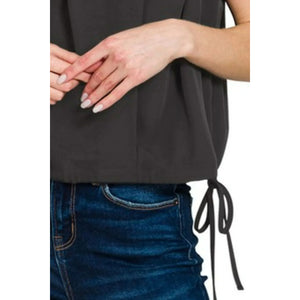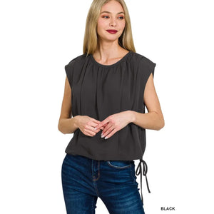 Zenana Woven Drawstring Tie Side Sleeveless Top