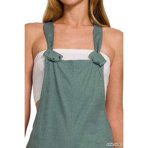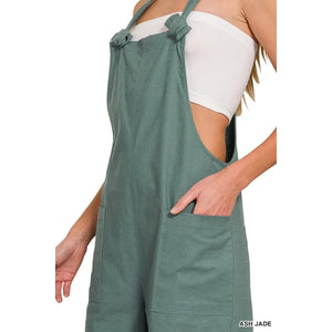 Woven knot strap overalls are a stylish and unique take on the traditional overall design. The woven knot straps add an interesting detail and a touch of bohemian flair to the classic silhouette. These overalls are typically made from a comfortable and breathable woven fabric, making them ideal for warmer weather. The knot straps can be adjusted for a customized fit and add a fun twist to the outfit. Woven knot strap overalls can be paired with a variety of tops underneath, such as a simple t-shirt or tank top, and styled with sandals or sneakers for a casual and on-trend look. They are a versatile and fashion-forward choice for those looking to add a playful element to their wardrobe.