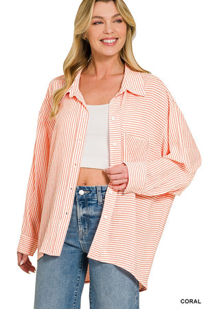Zenana Woven Stripe Button Down Shirt