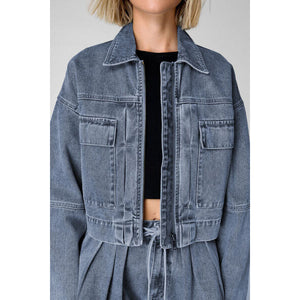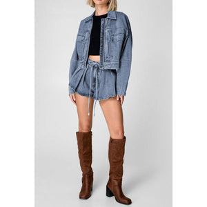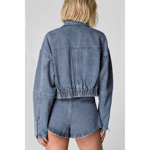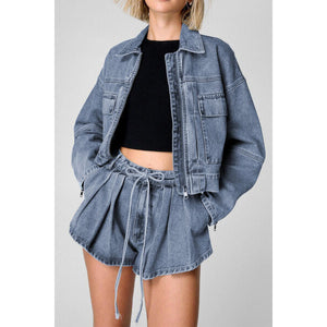 Zip Up Jacket and Drawstring Shorts Denim Set