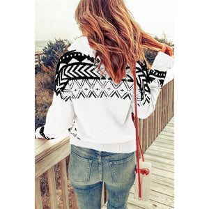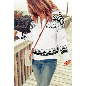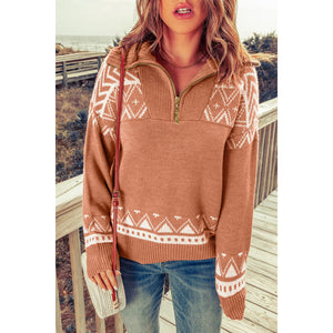 Zip-Up Mock Neck Dropped Shoulder Pullover Sweater